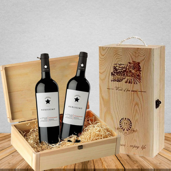 Một số hình ảnh Hộp gỗ quà tặng 2 chai rượu vang Ý Nerissimo Negroamaro